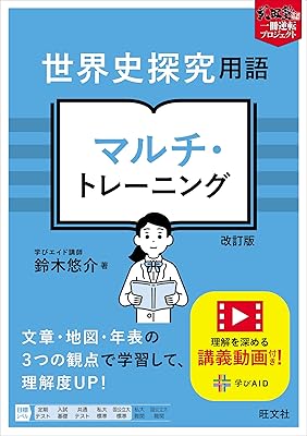 「文章」「地図」「年表」という3視点で用語を整理し、多角的に記憶定着を促します。さらに地図学習用の動画サポート付きで、位置関係が苦手な人にも安心。難関大レベルまで網羅する構成で、語句暗記に終わらず“使える世界史”を鍛えたい受験生に最適です。